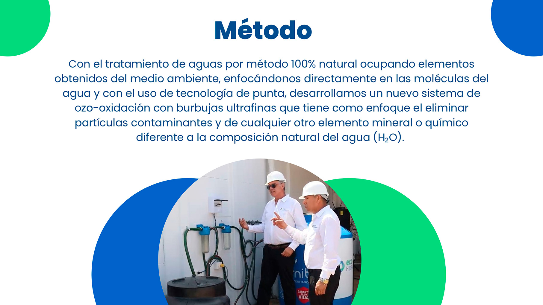 Realizamos el tratamiento del agua y desagüe mediante el proceso tecnológico de inyección de oxígeno y ozono, haciendo que el contacto del oxígeno con los contaminantes los oxide en forma inmediata.